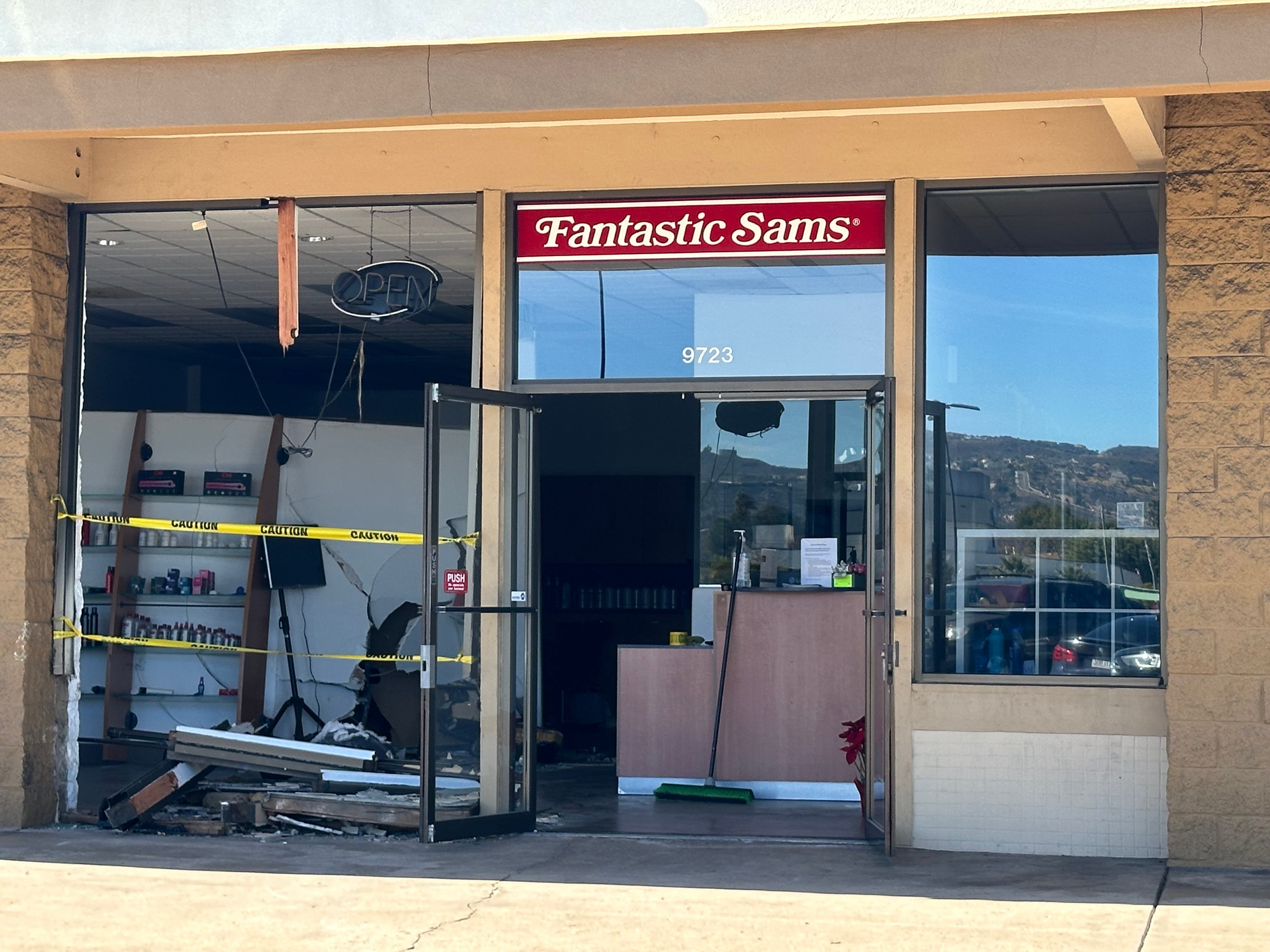 A vehicle crashed into the Fantastic Sams on Mission Gorge.