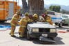 The next demonstration, ripping apart a car in a simulated traffic accident rescue, topped off the afternoon. It took six firefighters about ten minutes to take the doors, windows and top off of a car, using the "jaws of life" and other specialized equipment. They safely rescued a dummy that was "injured in the crash, and got it loaded into Mercy Air.