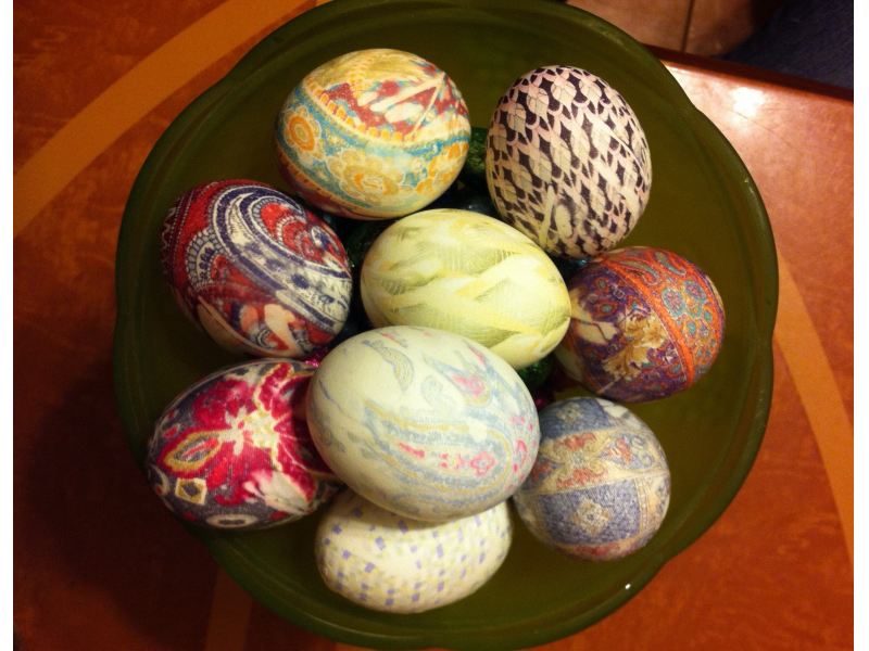 Let’s get one thing out of the way fast — using silk ties to dye eggs really is easy. I’m not a crafty person and this project gets my seal of approval!