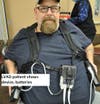 “It’s my portable life-saving device,” says Tim Prendergas, a heart failure patient from Fresno. His first LVAD six and and-a-half years ago was big, bulky, and uncomfortable. He’s on his third LVAD. He wears batteries for the device in what looks like a police shoulder holster.