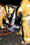 The Montero, an SUV, rolled over, but it was the male driving the Lexus who was trapped in the wreckage until Los Angeles city firefighters extricated him, a news photographer reported from the scene. He and the driver of the Montero, a female, were both transported to a hospital.
