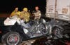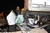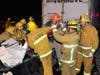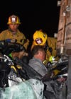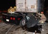Firefighters pulled the Corvette from beneath the truck and took the driver, who was conscious throughout the rescue, to a hospital with non-life- threatening injuries, Los Angeles Fire Department Capt. Steve Berkery told a news photographer at the scene.