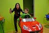 On the large picture windows, the name of the shop is painted in whimsical lettering set high on the glass. Inside, salon chairs have been transformed into kid-sized race cars and a fighter plane. And what child could resist sitting in the driver’s seat of a (pint-sized) Ferrari, or a Barbie convertible, or in the pilot’s seat of a U.S. Navy fighter plane.