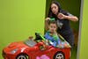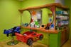 Marina explained that the thematic interior was designed by her brother-in-law, a professional artist who graduated from a fine art academy in Russia. He designed and produced the custom-made decorations: the colorful wall designs, lighting, fixtures, even the four toy vehicle/barber chairs, complete with steering, spinning wheels, and toy sounds.