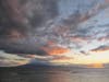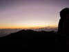 I reached the summit about 20 minutes before daybreak, got my camera, put on several layers of clothing, a hood, and plodded out to the rim of the crater to join about fifty others who had arrived for the same event. It was really cold and windy and my hands turned to wooden blocks before long without gloves. As the sun filled up the sky before breaking, the sky of clouds billowed in a myriad of dark hues and shapes.
