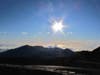 When daybreak arrived, 6:03 am this morning, two Forest Service women began chanting and the whole crowd was silent as we watched the sun climb up behind the clouds and grasp the day with a wild burst of orange. I still don't remember any sound except the chanting of the two women, not an ooh, ahh or brrrr, just this gorgeous hymn to the daybreak. Within twenty minutes of day break after we had all gotten our fill of pictures and eye candy, the summit was empty again.