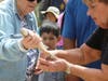 After the derby ended at 11:30 a.m., kids lined up to have their fish weighed and receive their certificate of participation. As the organizers tallied up the winners, Matsumoto called out raffle ticket numbers that were given to the kids when they signed up for the event. Several kids won fishing rods and other equipment that were donated by local residents and civic organizations. Then came the Winners’ Presentation.
