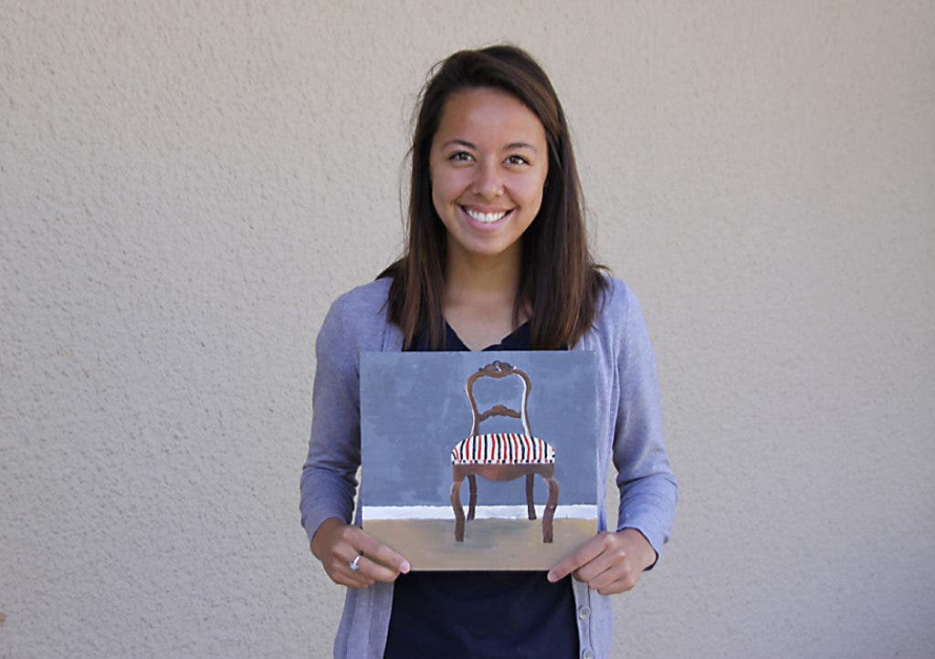 Gardner’s painting, “Untitled,” is of a Victorian-era chair, stark in its simplicity and yet highly detailed. An A.P. Art student, Gardner chose to study the “household architecture” of chairs as her portfolio concentration. She created a series of 12 paintings of different types of chairs, using the chair “as a vehicle to express humanity in aloneness, not loneliness.” Gardner came to A.P. art without the traditional prerequisite work. “She obviously had talent, but she had a lot of catching up to do,” commented Ellen Slatkin, one of La Salle’s A.P. art teachers. “She is working in metaphors - formal chairs, casual chairs. It’s part of who she is.”