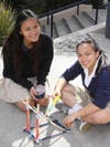 Students also tested how attaching a sling to their throwing mechanism, putting the catapult on an incline, and putting the entire catapult on wheels affected their accuracy and distance.