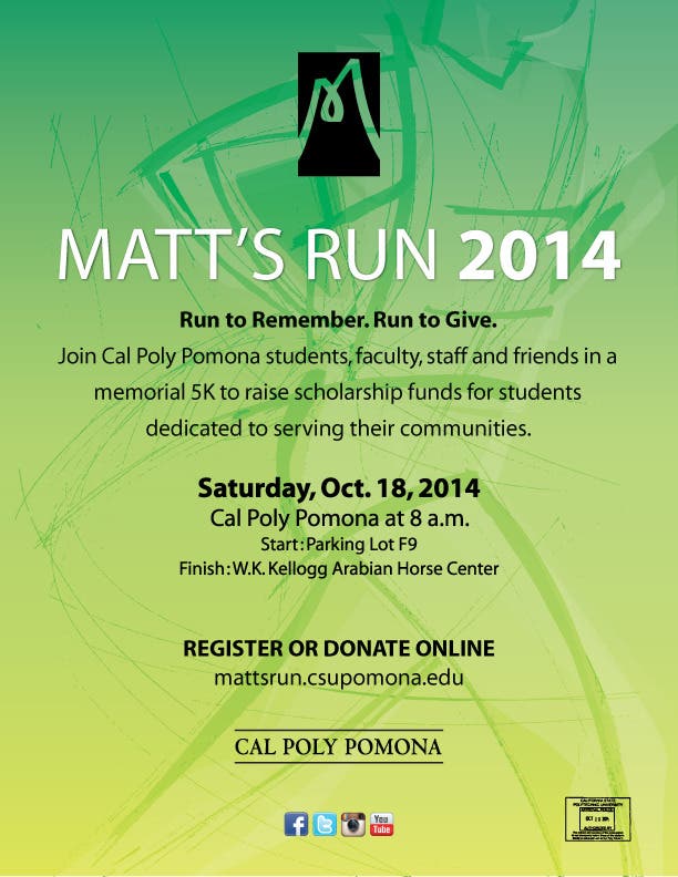 For more information visit http://mattsrun.csupomona.edu, contact dmholman@csupomona.edu, or call (909) 869-4706