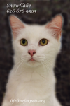 SNOWFLAKE is a beautiful, all white female, born approx. 2010. She's not only gorgeous on the outside, she's also lovely on the inside, with a sweet purr-sonality to match! She gets along well with other cats, too. It doesn't get much better than this! Better grab her up quickly, as she'll be very popular!