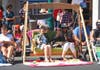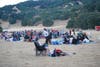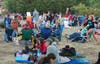 (One family set up a wooden, two-to-three person swing set for their viewing comfort, but the family dog got the best seat in the house with padded seats.)