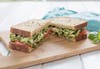 To assemble one sandwich, layer one slice of tomato on bottom half of bread. Add ½ of the pesto-chicken mixture, and top with second piece of bread.