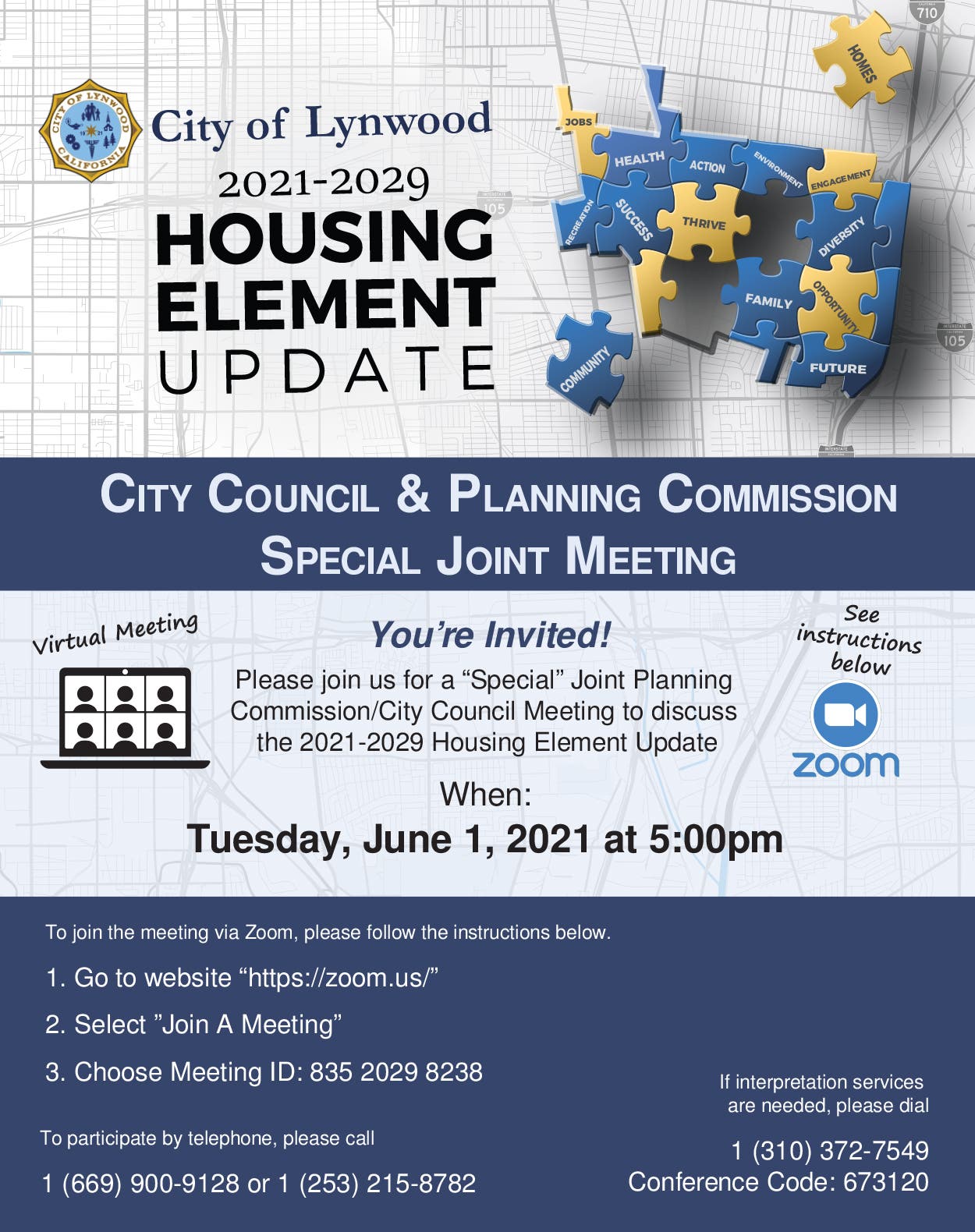 2021-2029 Housing Element Update- Special Meeting Tuesday, June 1 At 5pm In City Of Lynwood