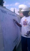 All of this took place on San Luis Ave. and it started at 8:00 AM Saturday morning. As soon as I got there I was welcomed with open arms by the Laker Organization. Right away I got an awesome t-shirt that had the world famous Laker emblem and said "Team Up". As I looked around to see who else is volunteering I noticed two Laker Girls were there, which I was surprised considering there was a Laker Game the night before.