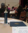 Su marido, Terry, entregó un trofeo y un certificado a cada estudiante premiado.