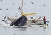 Bill Bouton, 69, a retired high school biology teacher captured some amazing photographs of a humpback whale rising from the water near San Luis Obispo, while a group of shocked spectators observed a few feet from it.