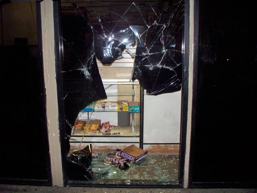 “[Officers] found the front of window glass was shattered,” said Lt. Pixler, who added that a large brick was seen on top of several small broken glass pieces within in the building.