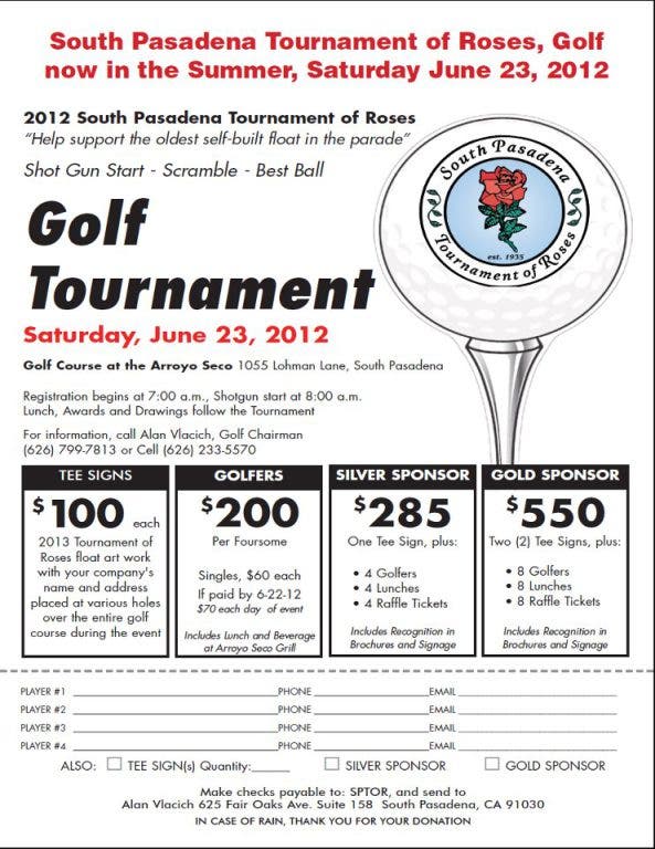 The South Pasadena Tournament of Roses Committee is proud to announce our 2012 Golf Tournament benefiting the South Pasadena Rose Parade Float.