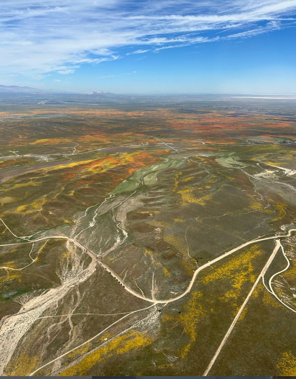 From space and the Earth below, Californians are reveling in the swaths of orange, purple, blue & yellow super blooms blanketing the state.