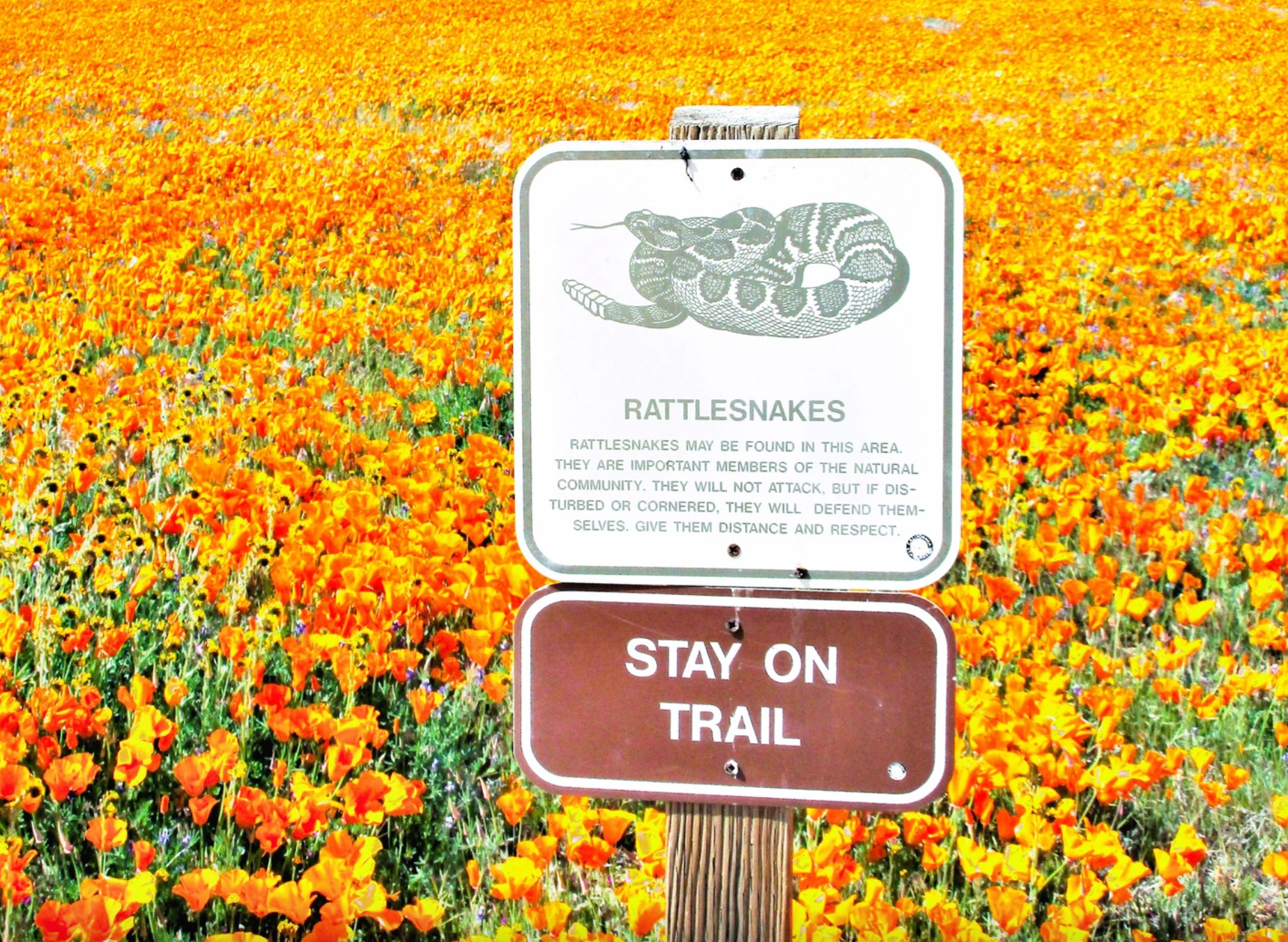 Los Angeles area photographer Howard Gray reminded us that rattlesnakes are a real danger when visiting the flower fields of Lancaster.
