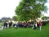 About 100 people attended South San Francisco's at the City Hall fountain at 9 a.m. on Sunday to commemorate the tenth anniversary of the terrorist attacks and honor the police officers, firefighters and other victims who lost their lives that day.Β