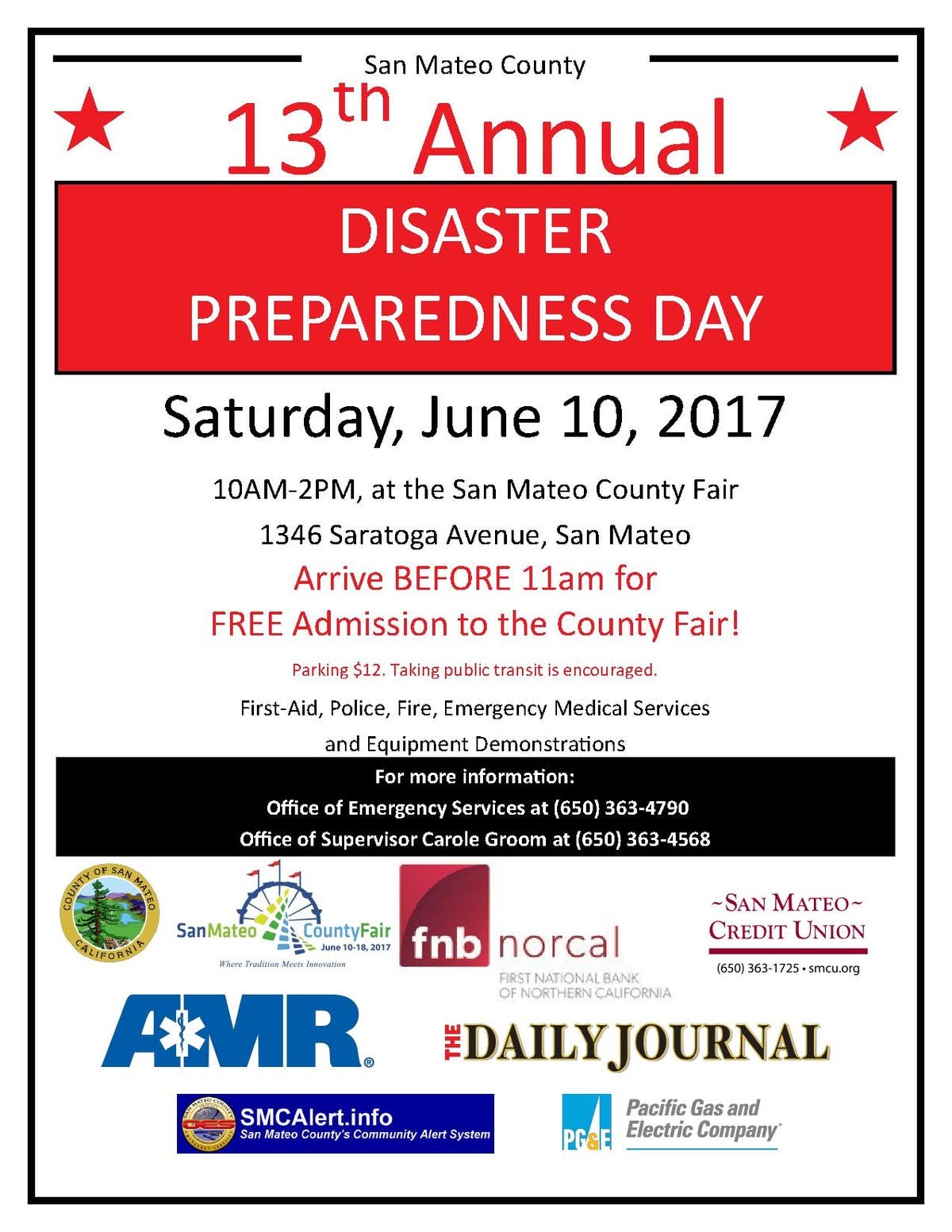 Learn how to prepare yourself and your family and neighbors in the case of an emergency or natural disaster at the 13th Annual Disaster Preparedness Day at the San Mateo County Fair.