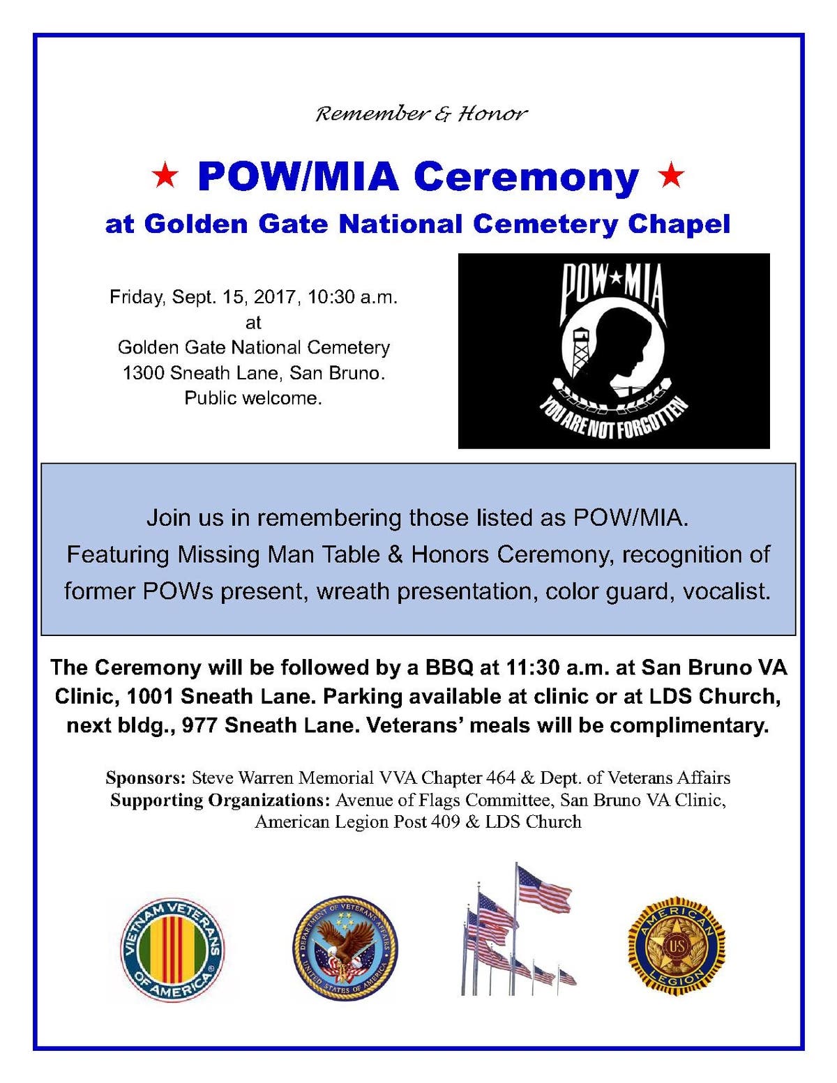 POW/MIA Sept 15 2017 Ceremony