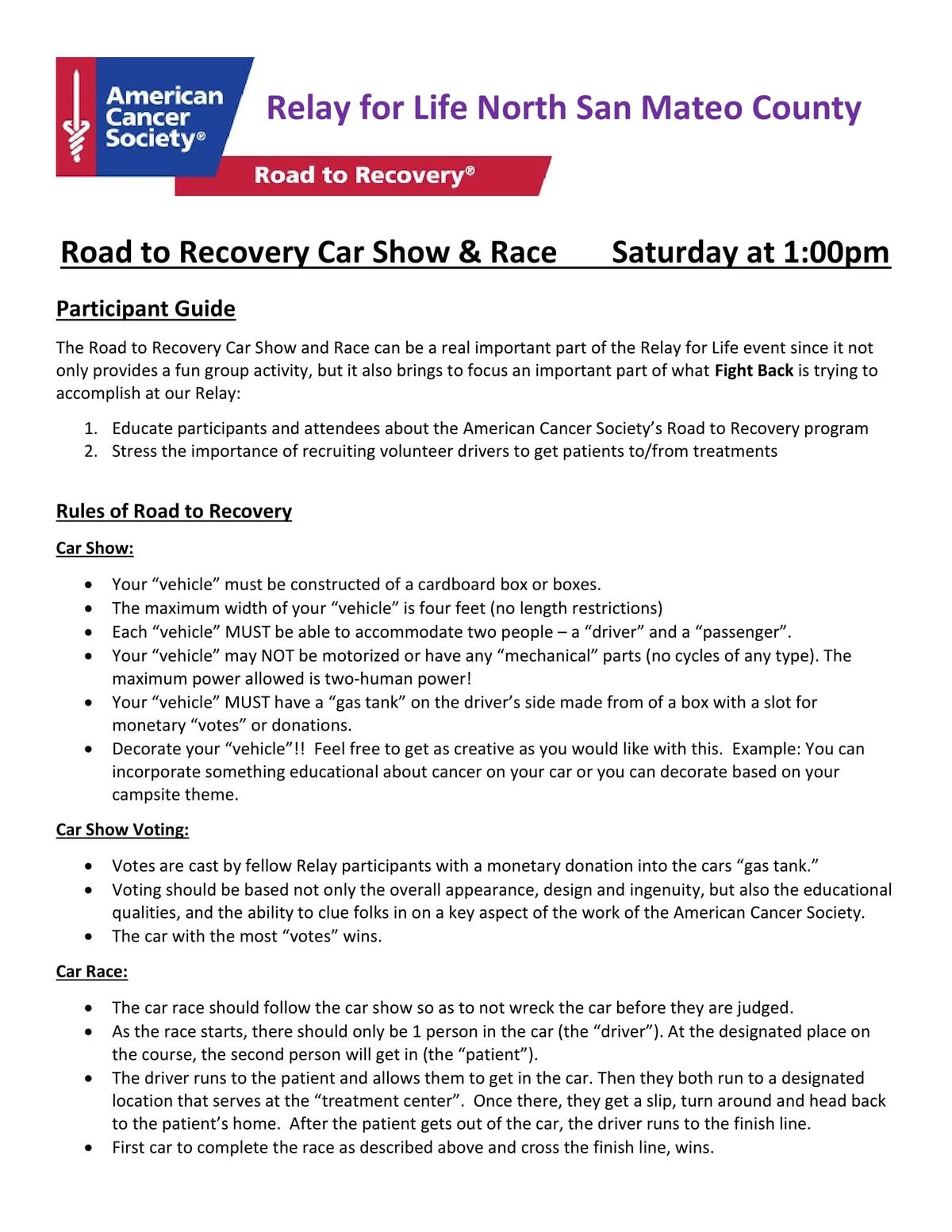 There will be a "Road to Recovery" Car Show and Race"