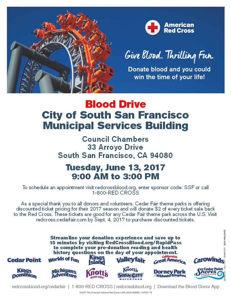 South San Francisco CA BLOOD DRIVE - June 13 2017 -- 3rd Post