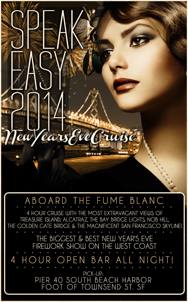 Presented by SF Nightlife, get ready for a special event aboard the Fume Blanc - the Speakeasy 2014 New Year's Eve Cruise! For the third year in a row, the most popular New Year's Eve events in San Francisco is back, and this year we're looking to make it better than ever. This themed event will transport you back to the 20s as you'll be surrounded by a slew of movers and shakers all decked to the nines.