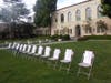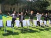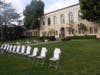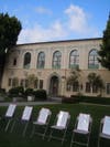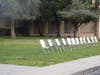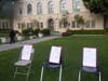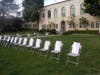 Parents have placed 12 empty chairs on the lawn, representing the teachers whose spaces may be vacated, including in the school's award-winning music program.
