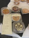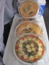 The quiches are the most beautiful I’ve seen with herbs arranged in flowery designs or vegetables and cheese placed in carefully arranged patterns. She uses a combination of ingredients in the various quiches, including tomatoes, spinach, caramelized onion, sundried tomatoes, mushrooms and a variety of cheeses. They come with crusts and without. She also makes small lasagnas. One is more traditional in the Italian vein, while another is French with a rich béchamel sauce.