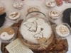 What initially caught my eye were cakes with designs etched in powdered sugar — the Croix de Lorraine — a recipe from 17th Century France made with only powdered organic almonds, sugar, egg whites, praline powder and vanilla. No egg yolks, flour or preservatives. This simple cake became popular in Lorraine, France and was originally decorated with a picture of the double cross of the Duke of Lorraine. Jinou only uses natural, market fresh ingredients with no preservatives in all her products.