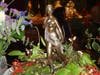 A stage at the front of the room is filled with cut evergreen trees and poinsettias. Two chairs covered with jewel toned fabrics and (fake?) fur throws are set amidst the greenery. Later they will seat women costumed as Diana and her daughter Aradia, surrounded by nymphs. Studio City UU Pagan Karen Renee will be Diana.
