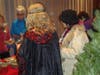 Women are gathering in the foyer waiting to be admitted inside. Already I am seeing velvet capes, draped robes and heads decorated with circlets of chain and crystals, holly wreaths or embellished bands.