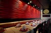 With an open kitchen where patrons can see an occasional flame fly, the interior is dramatic with a color palate of red, black and splashes of gold. A sleek bar is set back against one wall, while the opposite wall is red and formed into a textured sculpture.