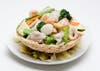 Try Shrimp a la Chi — plump shrimp cooked in Xiao-Sing rice wine with ginger, garlic and egg white sauce the Yu-Shung Calamari — a signature dish is wok-tossed with a spicy garlic sauce; Double Delight Mandarin Scampi (in the shell so be warned) is crispy shrimp cooked in a wok with peppercorn salt, garlic, scallions and jalapeno peppers.