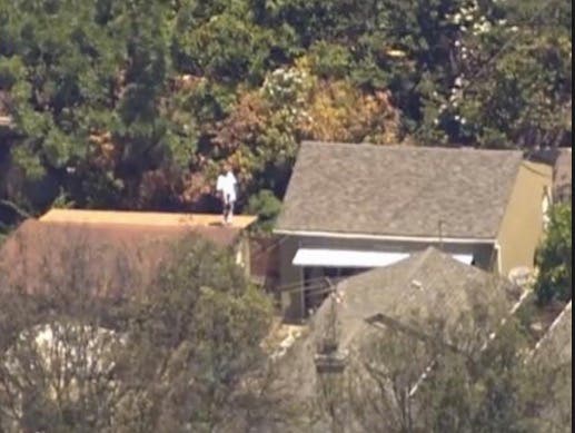 Shortly after police fired tear gas canisters into the residence, he came out unarmed and dropped face-down on the ground. SWAT officers moved in and took him into custody.