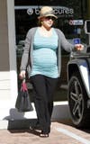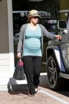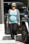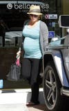 is out a lot just before she's about to pop with her big baby bump. She may look like she is having twins, but she's got one boy inside (at least that's what the gossip rags say). See the photos in the gallery above as she was leaving in Studio City recently. Nothing keeps her down, and she's already looking for someone trustworthy to sit for her upcoming baby so she can continue working . . .