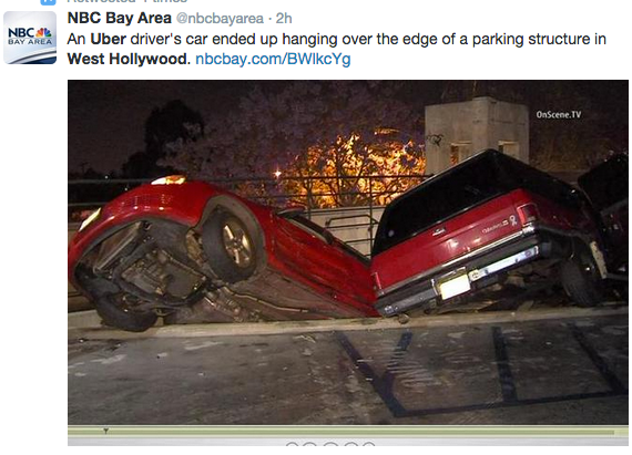 Uber Driver Escapes from Car Dangling Over Side of Parking Structure