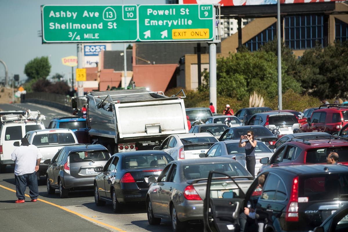 Main photo: Police officers investigate the scene of a standoff with a suspect driving a sports utility vehicle on westbound Interstate 80 on Wednesday, Sept. 27, 2017, in Emeryville, Calif. The incident, which ended in gunfire, shut freeway traffic in both directions at the height of morning rush hour. (Photo by Noah Berger/Associated Press)