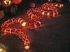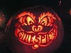 Another pumpkin I loved was one carved by John Lovrin.ย I saw him drilling a bunch of holes in the pumpkin and thought it was just going to be another luminaria.ย When I lit it that night, I realized he had carved holes everywhere around the shape of a cat with an arched back and a moon.ย
