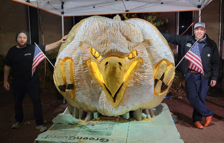 A Jack o'lantern in Half Moon Bay weighed in at 2,560 pounds. It was confirmed at the 49th Safeway World Championship Pumpkin Weigh-Off in October. Travis Gienger grew the giant gourd which he nicknamed "Maverick." The pumpkin was later hauled to Minnesota, the 'Halloween Capital of the World,' where it was transformed into an eagle for the celebration.