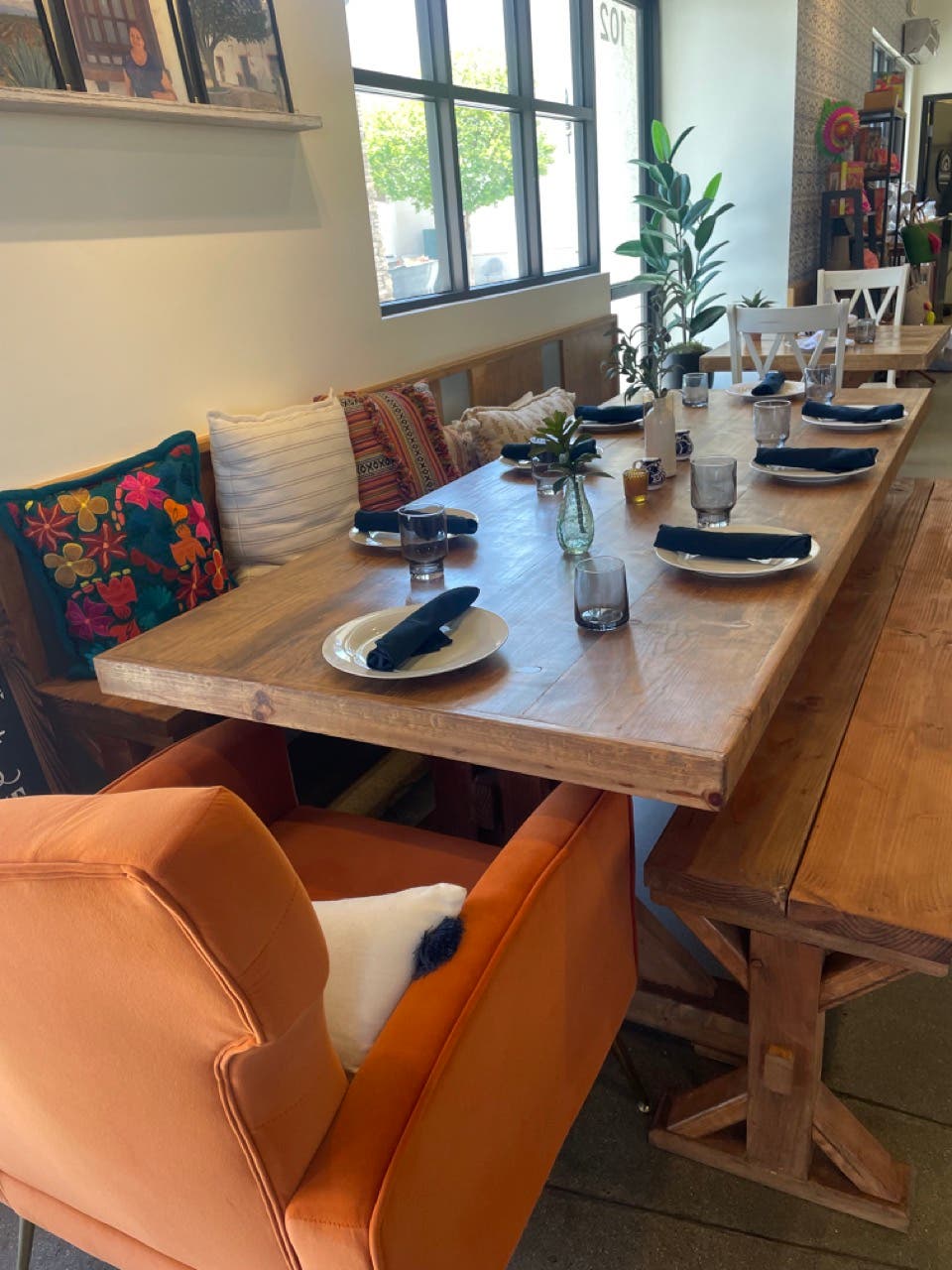 "My daughter runs the front of the house, and I run the kitchen," she says. They serve mocktails, beer, and wine behind the small bar. Recently, she hired a new chef to train her on the menu, which changes with the seasons.