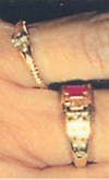 According to Thompson, the victim was wearing two gold necklaces -- one adorned with a rose stem symbol and two leaves, the other with a religious medal bearing the word "Jesus'' on one side, "Mary'' on the other. She also had on two gold rings -- one a possible wedding band with a floral design, the other bearing two clear stones -- and a gold wristwatch with a flower-shaped cover and several clear stones.