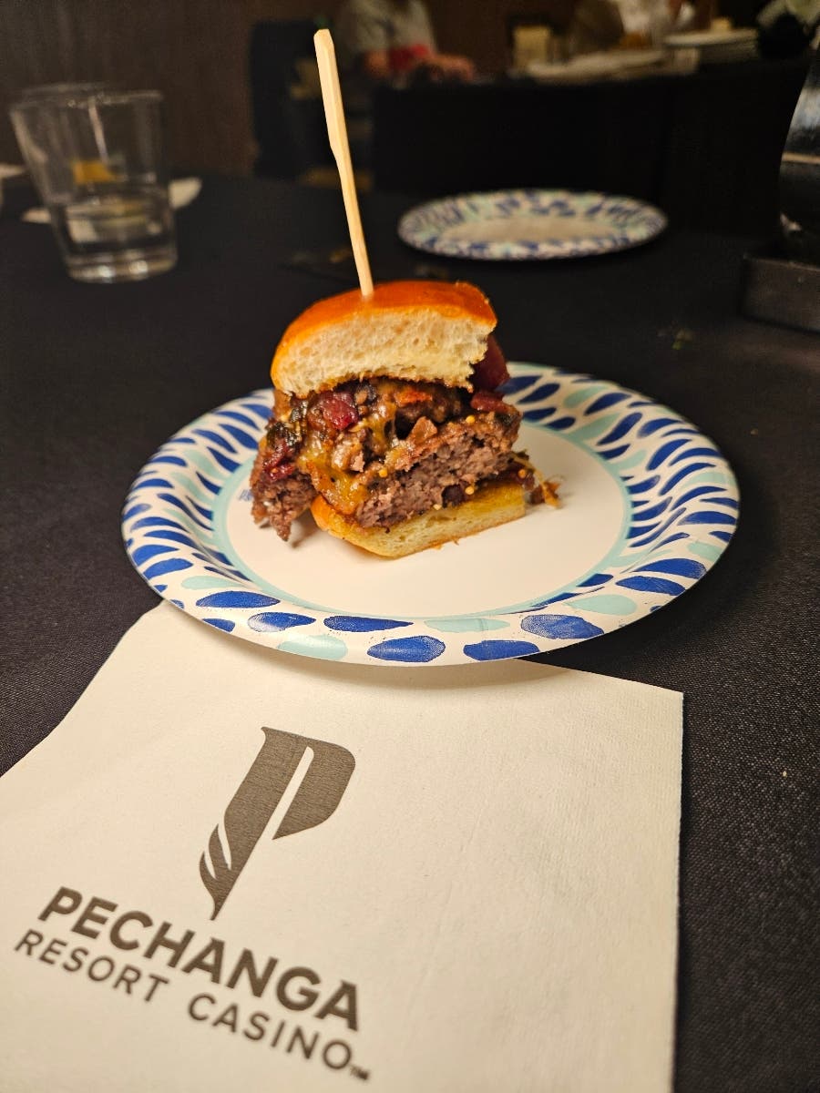 Outside, in the main Pechanga Ballroom, restaurants from Murrieta and Temecula set up their displays to trade samples to the masses. At the same time, I — and my fellow judges — tasted and voted on the seven Best Burger offerings and 11 Loaded French fries samples in a private tasting. All would be judged based on three categories: presentation; timing, temperature, and flavor balance (umami); varied ingredients and levels of uniqueness.