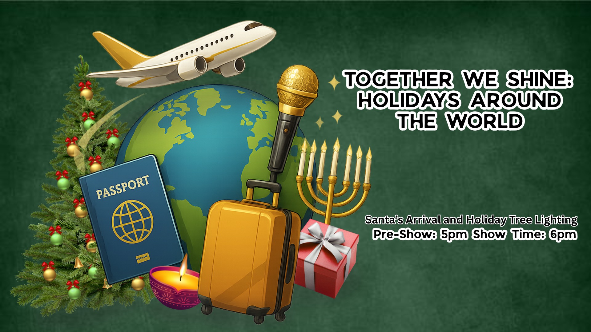 On Saturday, starting at 4 p.m. for giveaways, 5 p.m. for community performances and 6 p.m. for the main event, visitors are invited to the plaza in front of Regal Edwards Cinema for the "Together We Shine: Holidays Around The World" show.