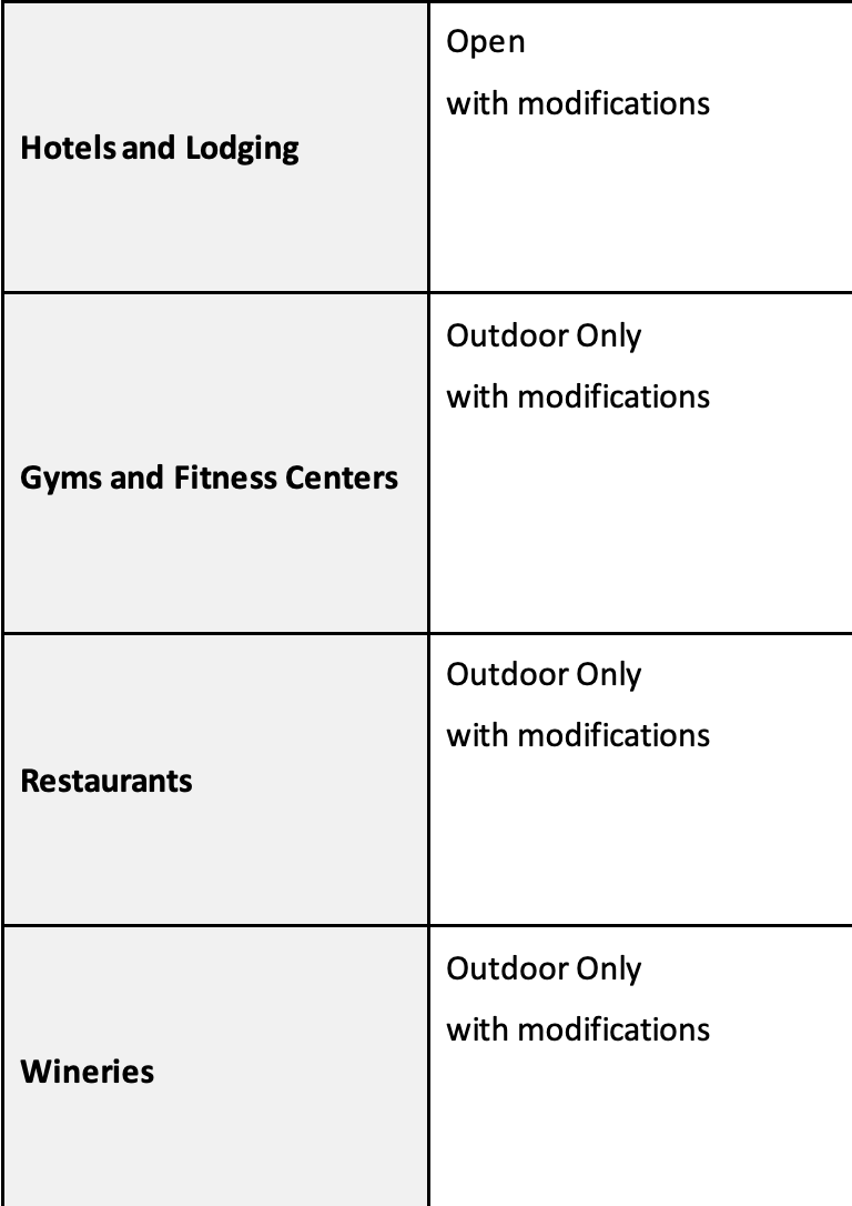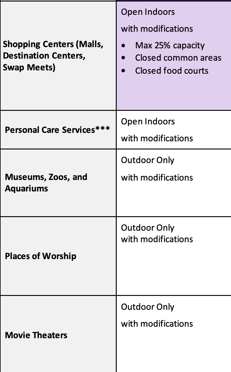 ***Personal care services, live audience professional sports and amusement parks updated October 20, 2020