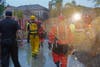 "Firefighters arrived on scene and reported three vehicles in the roadway with water depth at the vehicle doors and a total of five victims," fire officials said. "A total of three rescuers made entry into the water and deployed their boat."